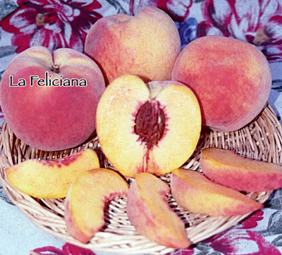 Heavy-bearing, high quality peach from Louisiana. Firm, flavorful, yellow freestone, matures in mid-July. Resists brown rot and bacteriosis. 400-500 hours. Self-fruitful.